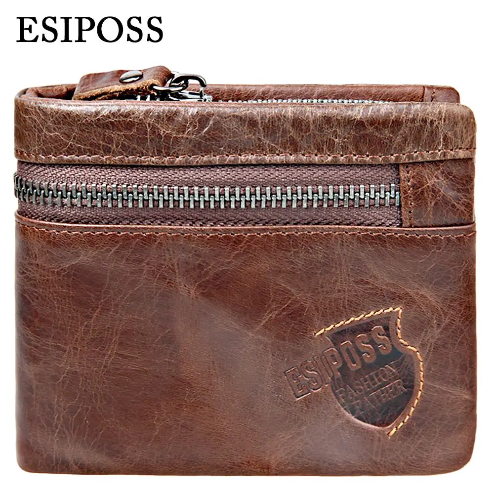 Who Sells Genuine Cow Leather Mens Wallets Brand Logo Zipper Design Bifold Short Men Purse Male Clutch with Card Holder Coins Purses Walet Purchase