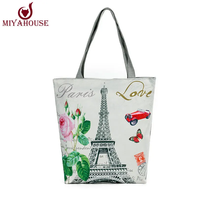 Price # Purchase Hot Sale Women Canvas Tote Paris Tower Print Female Shoulder Bags Canvas Beach Bag For Girls Single Shopping Bags Bolsa Feminina Act Now